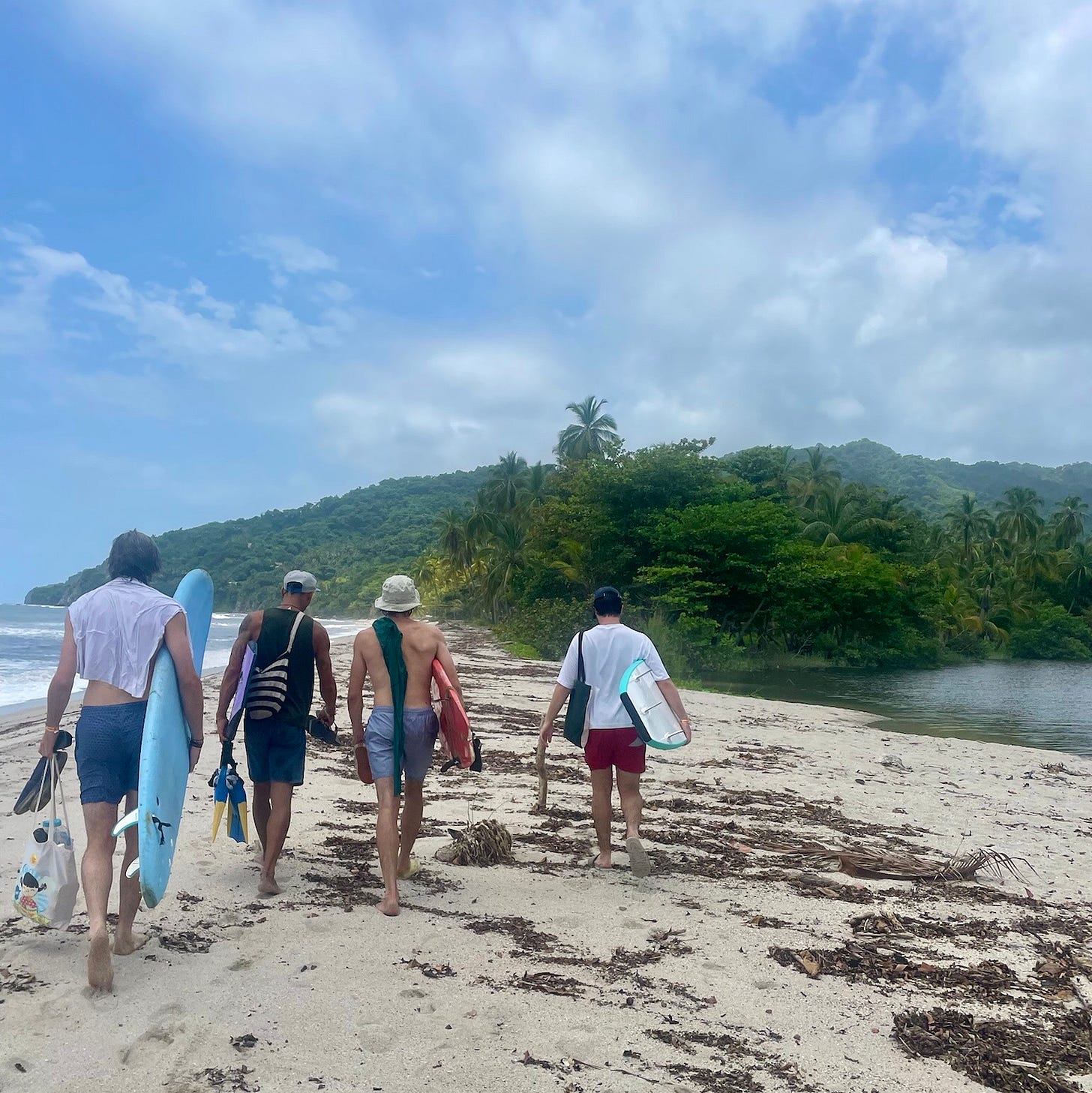 We snoozed an 8:30 alarm once or twice the following morning. Kayson had no phone, so sticking to the plan mechanically was the only option. We felt like we’d been hit by a truck. Kayson was at the meeting point. The 5 of us picked up the Spanish-and-sign dialect we discovered the night before. The first bit I understood from Kayson that day was his imitation one of us falling head down on a table after taking a puff. That put the first smile of the day on our faces. Either that or the first look to the four boards he had picked up. Each board looked like they’d lived three lives before Kayson resurrected them for a final rodeo. In retrospect, he clearly had none when we met him the night before. He later confessed that he was as much of a surf teacher as we were. Recently, he had also been a hiking guide, a fishing guide… the list went on until Kayson picked up his contagious laugh. He was basically a Venezuelan refugee trying to survive. So kudos to him for getting 4 boards before 9am the next day. His boogie boarder tattoo was authentic though - we were in decent hands.