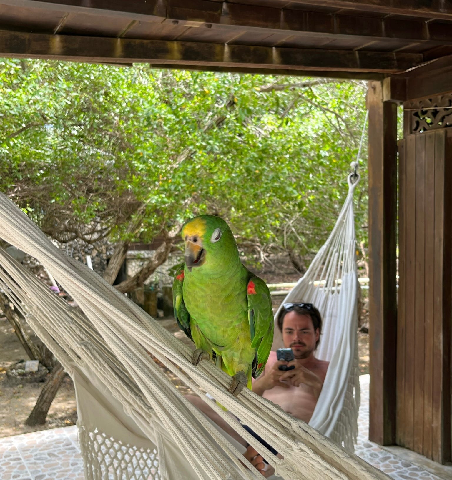 I showered quickly and joined them at the back of a hostel’s bar. Red and green lights were flying around the palm tree roof and green plants were hanging from every corner like a deep jungle. Reggaeton tunes were blasting - I was late for cumbia. I found my friends outside, sat with a shirtless rasta. They spoke in a mix of Spanish-and-sign language. I’m not sure which was more effective, but everyone seemed eager to make up for each other’s lack of understanding and trade stories. They had been together for a while, judging by their laughs.